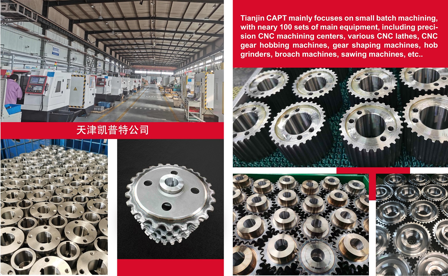 Established in December 1993 in Tianjin's Binhai New Area, Tianjin CAPT Power Transmission Machinery Co., Ltd. prioritizes customer value creation. Leveraging years of technological prowess and factory management, it focuses on the production and sales of mechanical power transmission parts'. With a team of over 20 experienced technicians and four design engineers, Tianjin CAPT specializes in small batch machining, with nearly 100 precision equipment units, including but not limited to CNC machine centers, lathe, gear hobs, broaches, grinders, sawing machines, etc.