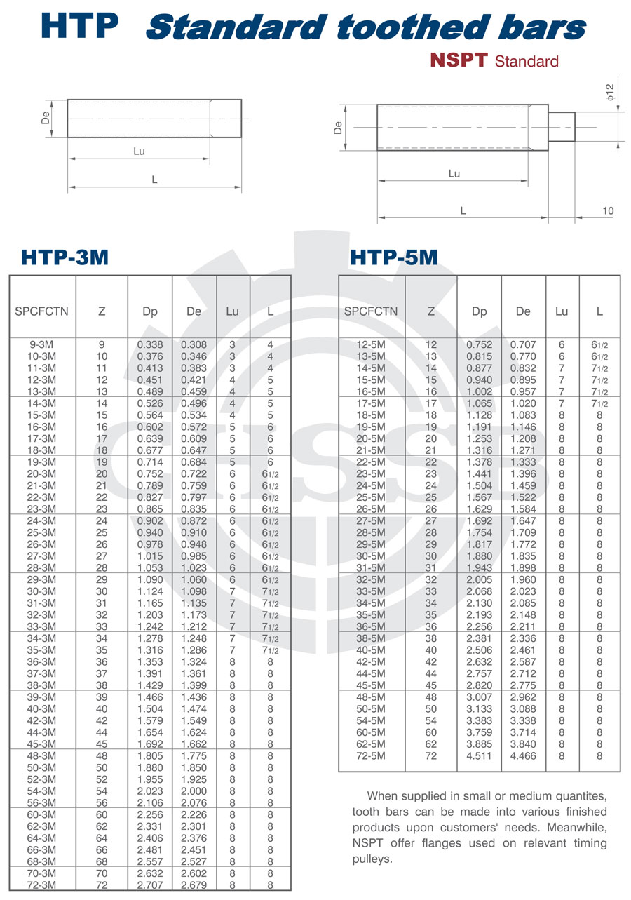 產(chǎn)品范圍: 美標/歐標:(HTD3M/HTD5M) 英制尺寸產(chǎn)品(適用于美標市場) 公制尺寸產(chǎn)品(適用于歐標市場) 圓弧齒HTD齒棒、圓弧齒、STD同步帶輪、圓弧齒齒棒