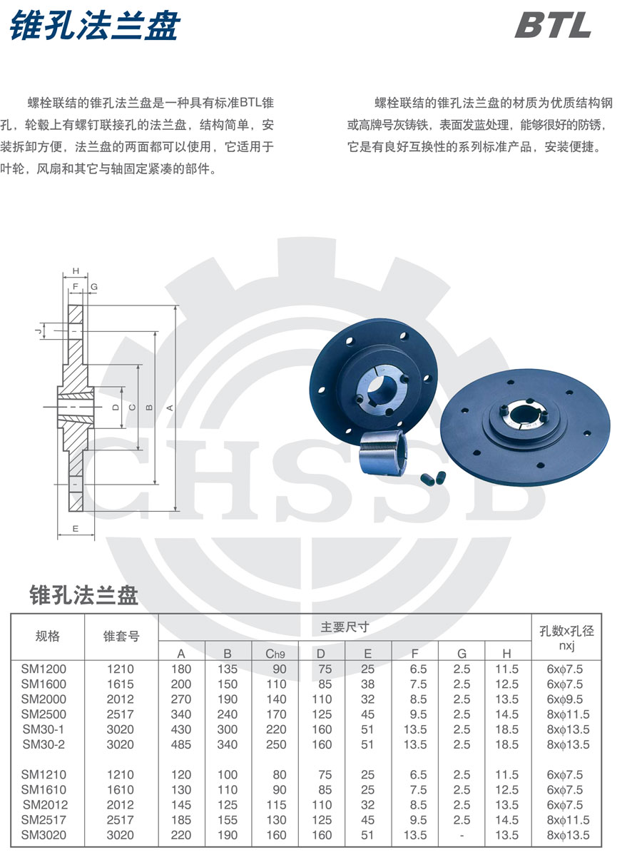 盤的兩面都可以使用,它適用于葉輪,風扇和其它與軸固定緊湊的部件。螺栓聯結的錐孔法蘭盤的材質為優質結